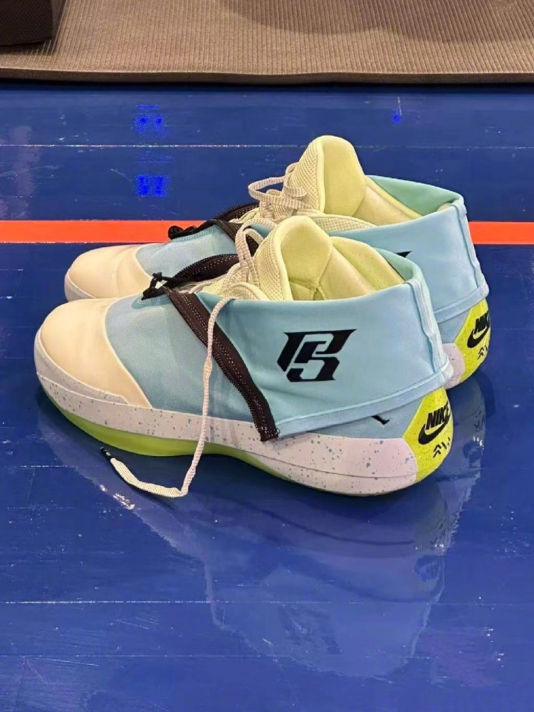 本场比赛班凯罗还上脚了一款特殊版本的个人PE球鞋,这双Air Jordan40 Hybrid“4028”PE,融合了最新款的AJ40和之前的鞋款AJ 28,将两者相结合推出的一款特殊鞋款。