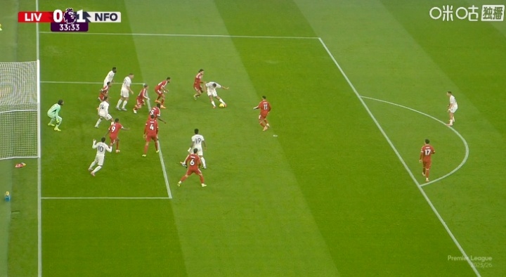2025-11-23 00:01:55这次干扰了吗?穆里略射门瞬间,越位位置的恩多耶干扰阿利松视线